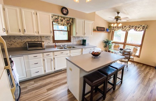 During your down time, gather with loved ones in the warm and inviting living area, where you’ll find plenty of seating to enjoy some good conversation, board games or just relaxing in the rocking chair reading a good book. If your fortunate enough to hear the whistle of the train as it travels past our home, you will feel like you have been transported back in time to the early 1800's when trains were a major part of Wisconsin's logging, coal and iron ore industry.