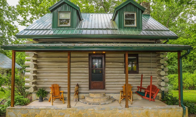 Relax while sitting on the front or back porch of this real log cabin listening to all the bird songs. There is plenty of wildlife to watch including visits from many small animals and an occasional deer. You can hear a rooster from afar who supplies your wake up call in the morning !