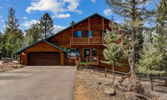 Beautiful mountain getaway located in a private neighborhood community. Enjoy being close to hiking, fishing, breweries, and Pikes Peak area attractions. This cabin is perfect for a family vacation and cozy enough for a romantic getaway. It comes equipped with access to Alexa, an office area including a printer, and exercise machines. Book with us today to ensure you have the perfect Colorado vacation!