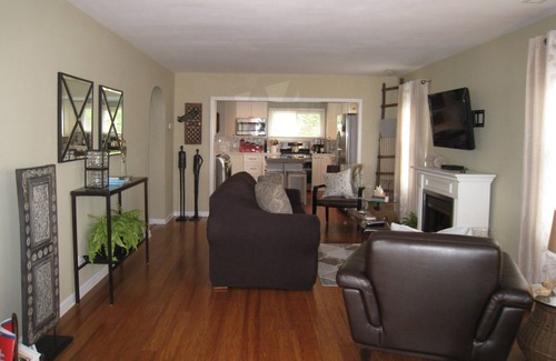 Amenities include 2 bedrooms, 1 full bathroom, multiple seating areas, 3 flatscreen TVs, wireless internet, cable, central air for those warm summer nights, ample parking, washer/dryer and much more!