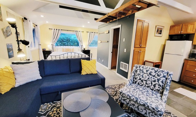 Peace and tranquility await you as you step into this sweet cottage with seasonal views of the Willamette river. Surrounded by nature in this quiet neighborhood, sleep in in the lush California King bed or grab the provided back pack cooler and hit the trails in the Waterfall corridor of the Columbia Gorge. Pick up a bottle of wine at one of the many nearby wineries and enjoy it out on your private patio or head out to Portland to enjoy the theaters, restaurants and night life! So many options!
