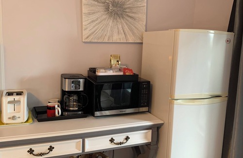 ***NO FULL KITCHEN but a microwave, mini fridge and coffee maker in the guest room for your convenience is available. Disposable cutlery, cups and plates only. (Bring your own) and your very own BBQ with a side burner on your side of the patio(utensils for the BBQ and propane tank provided) ****1 tank per stay. Additional available for a fee.