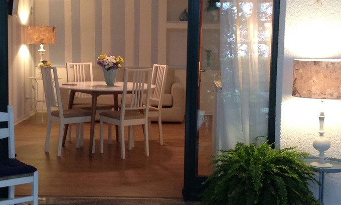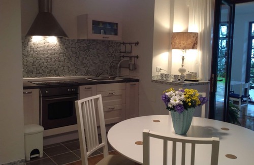 Ground floor apartment, with access to the garden, on the lakefront in Viverone. The apartment, of about 50 m / q, is composed of a living area with equipped kitchenette, a bathroom is a bedroom with double bed, plus a large porch of 35 m / a furnished and closed with mosquito nets covered with jasmine.