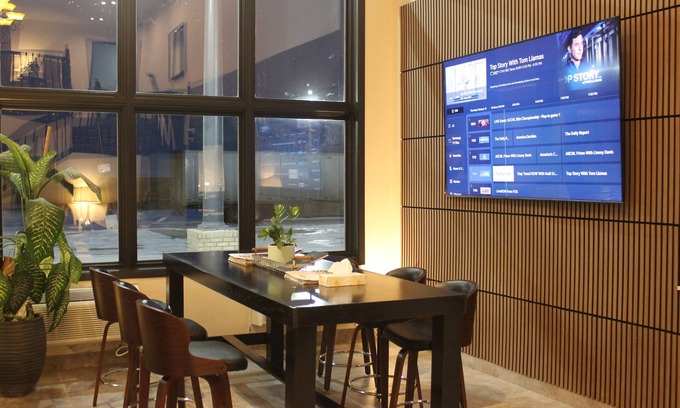 An indoor pool and a hot tub are on site. Other recreational amenities include a 24-hour fitness center.