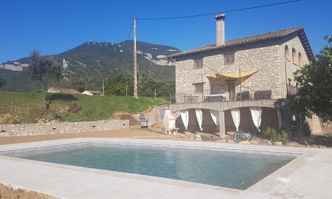21 miles from Dalí Museum in Sales del Llierca, Allotjatments Can Servosa features accommodations with access to an open-air bath. This property offers access to table tennis, darts, and free private parking. On clear days, guests can head outside to enjoy the country house's outdoor fireplace or simply kick back and relax. Offering a terrace and mountain views, the spacious country house includes 5 bedrooms, a living room, satellite flat-screen TV, an equipped kitchen, and 1 bathroom with a bath and a shower. The comfortable, air-conditioned accommodation also comes with soundproofing and a fireplace. For added privacy, the accommodation features a private entrance. For guests with children, the country house offers both an indoor and outdoor play area. Guests can swim in the outdoor swimming pool, relax in the garden, or go cycling. Girona Train Station is 27 miles from Allotjatments Can Servosa, while Peralada Golf Club is 30 miles away. Girona-Costa Brava Airport is 35 miles from the property.
