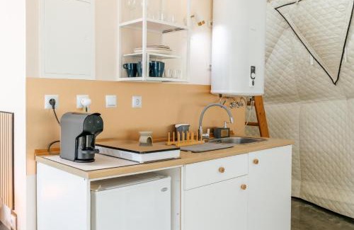 Alma-Rio Dome by Mycelia is a recently renovated luxury tent in Tomar where guests can make the most of its outdoor swimming pool, garden, and shared lounge. This property offers access to a terrace, free private parking, and free Wifi. The accommodation provides a shared kitchen and private check-in and check-out for guests. This air-conditioned luxury tent comes with a fully equipped kitchenette, a seating area, a dining area, and a satellite flat-screen TV. Guests can take in the views of the mountain from the balcony, which also has outdoor furniture. This luxury tent is allergy-free and non-smoking. A continental breakfast is available at the luxury tent. For guests with children, Alma-Rio Dome by Mycelia features an indoor play area. With an outdoor fireplace and a picnic area, this luxury tent offers plenty of opportunities to chill out. Sanctuary of Our Lady of Fatima is 31 miles from the accommodation, while Chapel of the Apparitions is 30 miles away. Humberto Delgado Airport is 88 miles from the property.