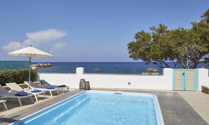 Best-rates for the Almyriki Beach Villa starts from $362 per night with includes Child Friendly, Laundry, Pool, Private Pool, Balcony/Terrace, Restaurant, Toiletries, Guest Services, Internet, Ocean View, Wellness Facilities, Barbecue/Outdoor Cooking, Kitchen, Air Conditioner, Parking, Designated Smoking Area, View, Fireplace/Heating, Breakfast, TV, Oceanfront, Accessibility, Bedding/Linens with all other amenities. Perfect for Weddings is committed to ensuring every guest experiences a comfortable and extraordinary stay, whether planning a romantic getaway, a honeymoon, a pet-friendly stay, or celebrating with the entire wedding party.