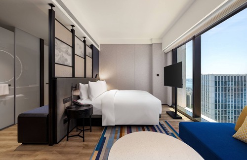 Aloft Yantai offers 350 air-conditioned accommodations with minibars and safes. Pillowtop beds feature down comforters and premium bedding. A pillow menu is available. 55-inch LCD televisions come with cable channels. Bathrooms include bathtubs or showers with rainfall showerheads, bathrobes, slippers, and hair dryers.
