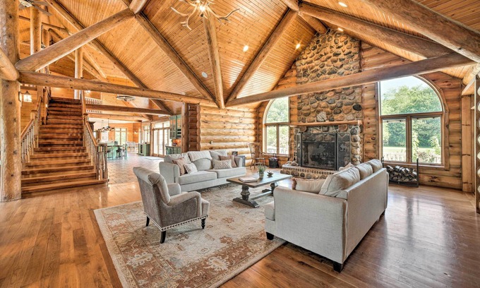 Outdoor Bliss: Enjoy tranquil moments by the serene fishing pond or engage in outdoor activities including yard games and swimming, all while surrounded by the natural beauty of your private estate.
