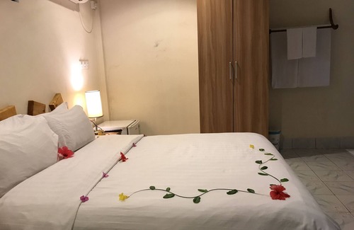 Aloha Rasdhoo is a cosy accommodation located in Rasdu Atoll. Surrounded by crystal clear waters, this secluded residence also offers free Wi-Fi access at all areas. Various water-sport activities including snorkeling, scuba diving and fishing can also be arranged upon request. The residence is only a 5-minute boat ride from well-known Madivaru Reefs. Male International Airport is 60 km away while Hulhule Airport is 56 km away. Rooms are well-appointed and cooled with air conditioning. Each room comes with a wardrobe, ironing facilities, flat-screen TV and a minibar. Bathroom facilities are attached. At Aloha Rasdhoo, you will find a 16-hour front desk, operates between 0700 hours - 2300 hours and in case if guest need any assistance guest may call manager on duty, a peaceful garden and barbeque facilities. Ironing/laundry services are offered to all guests at a surcharge. Guests can enjoy a variety of Asian, Western and European cuisines at the in-house restaurant. In-room dining options are available as well.