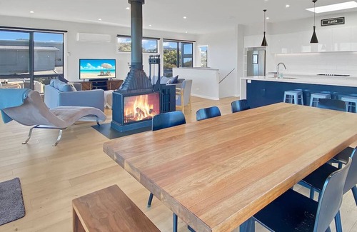 Alonda is a luxurious 4BR, 3BA coastal retreat with stunning 180° ocean views, a 5-seater spa, and a plunge pool. Enjoy the open-plan living with a cast iron fireplace, a modern kitchen, and spacious decks perfect for relaxing. Two living areas, and high-end amenities make it ideal for families or groups. Linen is provided for your stay, including bath towels and pool towels. Just steps from Bore Beach, it’s your perfect escape for comfort, style, and unforgettable views.