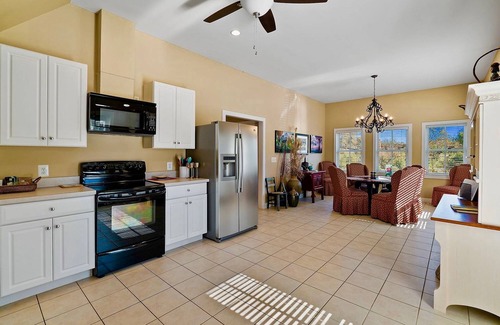 Escape to a private hillside haven on our 130-acre Cedar Hill Alpaca Farm, where every window frames sweeping views of rolling pastures, grazing alpacas, horses, and Giuseppe the donkey. This spacious yet cozy 3-bedroom apartment offers warmth, comfort, and color—with joyful, artful décor that makes every corner feel like home.