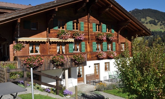 42 m2. More information by the provider: Alpenchalet Weidhaus-Spiher in Gstaad offers panoramic mountain views, free WiFi and a quiet location surrounded by nature. After a 20-minute walk you can reach the center of Gstaad. In the car-free village center you will find numerous restaurants and shops that invite you to stroll. You can park your car for free in front of the Alpenchalet Weidhaus-Spiher. The completely wooden chalet offers various units for rent. Among other things: A modern apartment with a fully equipped kitchen, a cozy living room and a balcony with panoramic mountain views. Furthermore, studios with kitchens and single rooms with wet rooms are offered. On request and for larger groups, we recommend renting the entire chalet. Raclette and fondue facilities are also available. In summer you can use the barbecue facilities in the garden and enjoy cozy summer evenings with family and friends with a soft drink, beer or glass of wine. The property offers a small mini and snack bar. You can reach the Wispile ski slope in just five minutes on foot. Good skiers and snowboarders can even ski to the Alpenchalet Weidhaus. Families with children enjoy our swing, our lovely pets or various playful activities around the house. We speak German, French and English. Stay healthy with fresh Gstaad mountain air! Your hosts Marianne and Arnold Welten look forward to your visit.