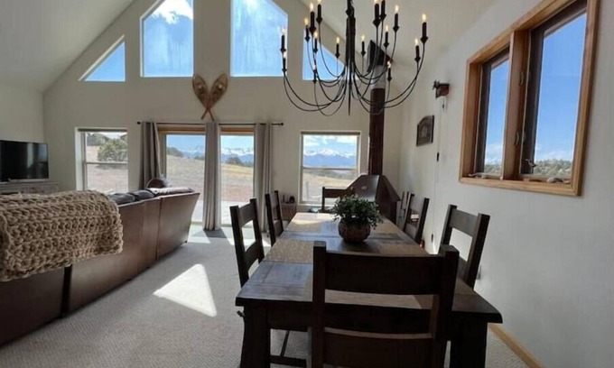 Experience the natural beauty of the vast meadows and panoramic views of the Sangre de Cristos and Wet Mountains. Our open and airy mountain getaway is located two hours and 45 minutes from Denver. Unwind at this rural and tranquil retreat just 15 minutes outside of historic Westcliffe, CO one of the most scenic and charming mountains towns in the West. Experience the Alpenglow at sunrise, stunning sunsets, and unparalleled stargazing under the world's highest elevation International Dark Skies.