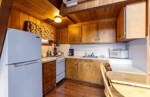 You’ll be just steps from gorgeous Beverly Beach when you stay at this charming, dog-friendly one-bedroom Otter Rock cottage. Part of the idyllic Alpine Chalets community, this cozy A-frame offers ocean views, WiFi, a shared outdoor firepit, and direct beach access.