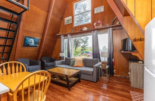 Wake up to ocean views and the sound of waves at this cozy A-frame cottage in Otter Rock. Just steps from Beverly Beach, this dog-friendly home offers a full kitchen, WiFi, firepit, and room for up to 6 guests. Walk to Mo’s West, Cliffside Coffee, Flying Dutchman Winery, and Pura Vida Surf Shop. Whether you're storm-watching, surfing, or relaxing by the fire, this peaceful coastal retreat is perfect for a romantic getaway or a laid-back family stay.