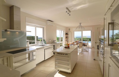 Enjoy the Costa Brava while staying in a real oasis of luxury with views of one of the most beautiful bays in the world. Villa Balmes awaits you! Discover this luxurious villa where you can enjoy an unforgettable stay with all the creature comforts. The complex is completely enclosed by thick, tall hedges to prevent nosey neighbours! You can enjoy complete privacy in the house, the pool and on the terraces. On the main floor there is a 1 bedroom suite with shower (sofa bed), fully-equipped kitchen with a dining room and big sitting room, all beautifully decorated, spacious, modern, full of light, with large windows offering a view of the Bay of Roses. Just in front is the main terrace with sun loungers and a large pool (9x5m).GROUPS OF YOUNG PEOPLE UNDER 25 ARE NOT ALLOWED On the lower floor there are three large suites, two with a shower and a air conditioning, one with a large bathroom with shower, hydromassage bath and sauna. On this floor there is a kitchenette and a couple of sofas designed as a communal area. Villa Balmes awaits you fully-equipped, with the beds made, towels ready for bathing and some small welcome gifts to guarantee your wellbeing from the start. This stunning villa is perfect for people who are looking for something very special, whether, for example, for a honeymoon, wedding anniversary or for the simple pleasure of having a very special stay in a fantastic house surrounded by the sea and mountains, and of course, for those of you used to a high standard of living, who need large, comfortable and private spaces to enjoy on holiday. Upon request, we provide a cleaning service during your stay (at a supplement). Here, you have the chance to find peace and relaxation even in August, just a few minutes by car from the sea, beaches, coves, and tourist centres such as Roses and Empuriabrava, and not far from Cadaqués and Perelada. Our area has excellent gastronomy all year round, summer concerts, all kinds of water sports, golf courses, paddle and tennis courts, places of mediaeval interest and much more. What are you waiting for? With NRA: ESFCTU[hidden][hidden]00000000[hidden]-344