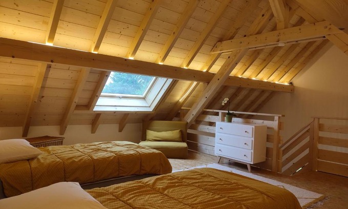 6.2 miles from House of the Heads in Sigolsheim, Alsace Chalet & Spa Meyer-Krumb provides accommodations with access to a hot tub and spa facilities. The air-conditioned accommodation is 4.9 miles from Colmar Expo. There's a picnic area and guests have access to free Wifi, free private parking, and an electric vehicle charging station. Providing a terrace and garden views, the vacation home includes 2 bedrooms, a living room, flat-screen TV, an equipped kitchen, and 1 bathroom with a hot tub and a shower. Towels and bed linen are provided in the vacation home. For added privacy, the accommodation has a private entrance and soundproofing. Outdoor play equipment is also available at the vacation home, while guests can also relax in the garden. Saint Martin Collegiate Church is 6.4 miles from Alsace Chalet & Spa Meyer-Krumb, while Colmar Train Station is 6.6 miles away. The nearest airport is Strasbourg International Airport, 39 miles from the accommodation.