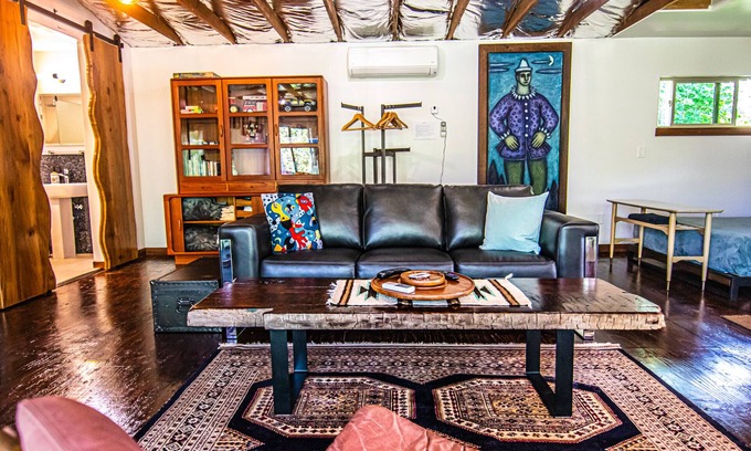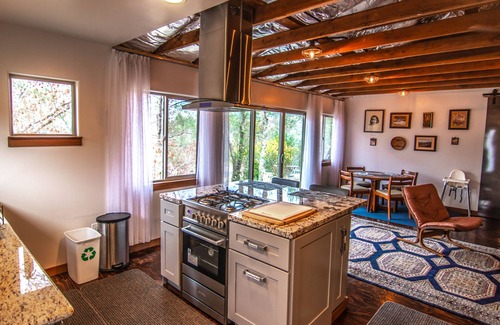 Fully equipped kitchen, outside patio w/h barbecue area. Coffee maker, French press, toaster oven, waffle maker, dishwasher and microwave are provided. Free Wifi with Streaming TV (Amazon Prime, Nick Jr, ESPN). It features Mid Century Modern Danish furniture, wood floors, leather couch, granite counter tops, claw-foot tub/shower, custom built furniture made from old growth Sequoia.