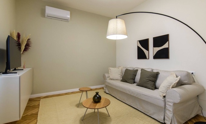 - The apartment is located on the fourth floor of a building with a lift, not suitable for the disabled.It comfortably accommodates six people in 102 square meters of space, with a double bed, two single beds and a sofa bed in the living room.Complete with
