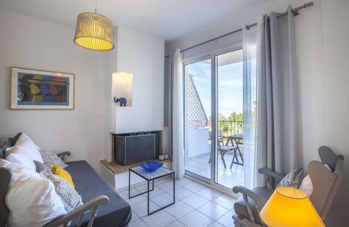 This one-bedroom family flat with an extra attic is just 50sqm but has cleverly designed spaces and amenities that include an updated bathroom with monsoon shower, a small but fully equipped kitchen, a bedroom with a wardrobe, an attic with 2 single beds, a living room and a balcony with a dining area where you can enjoy the sunset views. Exceptionally well located on a hill at the outskirts of N. Marmaras, just 400m from the beach & the village centre with plenty shops & restaurants.