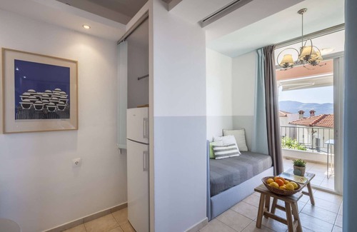 It offers you a unique and elegant space, ensuring you a stay with comfort and luxury. Ideal for family holidays or for couples who want to relax. Top benefits the only few stairs to the flat, the two balconies, the outdoors dining table with sea view and the brand new bathroom with the monsoon shower; also, the short walking distance from supermarkets, restaurants and shops. Car is recommended if you want to explore the nice Sithonia beaches around.