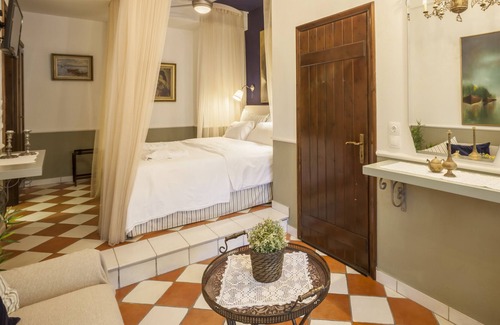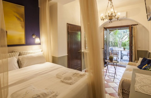 Spacious air-conditioned room with lounge area and a private veranda providing direct access to the lovely garden with olive, orange, lemon and pine trees. The room has an elegant, smart look and distinctive personality. It comes with a double king bed and is fully ensuite with toilet, shower and complementary toiletries. Also available in the room are Tea & Coffee making Facilities, Flat Screen TV, Hairdryer and Free Wi-Fi.