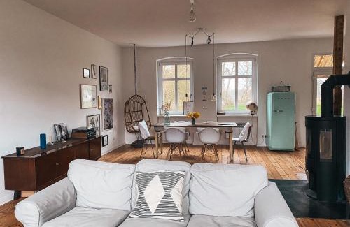 Altes Dorfhaus Sechzehneichen offers accommodations in Sechzehneichen, 30 miles from Kulturhaus Stadtgarten. 23 miles from Klessen Castle and 25 miles from St. Mary's Cathedral and Prignitz museum, the property offers a garden and barbecue facilities. There's a sun terrace and guests have access to free Wifi, free private parking, and an electric vehicle charging station. The apartment consists of 3 bedrooms, a living room, a fully equipped kitchen with a dishwasher and a coffee machine, and 2 bathrooms with a walk-in shower and a hair dryer. Towels and bed linen are offered in the apartment. This apartment is allergy-free and non-smoking. Yoga is available at the property. Guests can also warm up near the outdoor fireplace after a day of cycling. Rostock-Laage Airport is 76 miles from the property.