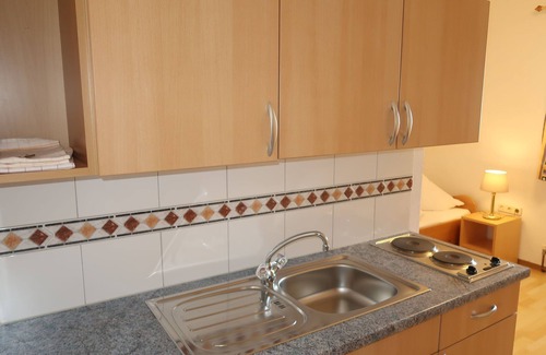 "Altes Zollhaus", 5-room apartment 127 m2, on the upper ground floor, south-west facing position. Partly renovated in 2020, rustic and cosy furnishings: living room with satellite TV. 2 double bedrooms, each room with 1 double bed. 1 room with 2 beds, kitchen corner and shower/WC. 1 room with 3 beds. Kitchen (oven, dishwasher, 4 ceramic glass hob hotplates, toaster, kettle, microwave, electric coffee machine) with dining table. Shower/WC, sep. WC. Oil heating. Wooden floors, carpet. Box-room. Facilities: children's high chair, baby cot, hair dryer. Internet (WiFi, free).