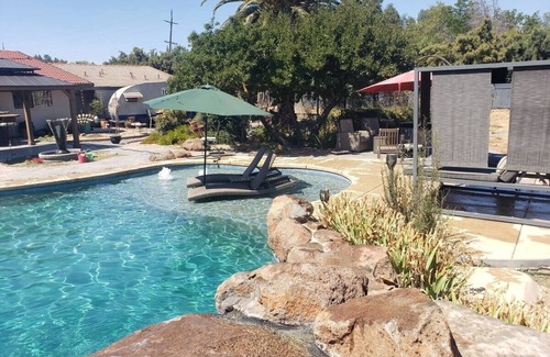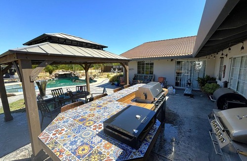 - Sierras-view home with pool, grill, wood-burning fireplace, and AC - dogs ok