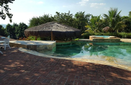 Recreation area with waterfall pool, non heated spa and bar, barbecue, stove and wood oven, pizza oven, volleyball court and a cozy spot for a fire pit. The basic rate does not cover holidays, please consult.