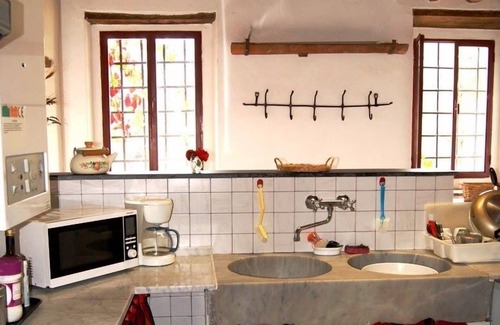 PLEASE NOTE: Check-in is between 4 p.m. and 7.30 p.m. For arrivals between 7.30 and 10.30 p.m. a 35 Euros fee will be applied. Small pets are accepted only (if confirmed by the owner upon confirmation of the booking). Access to the house along 1 km of dirt track road not suitable for sport cars. Due to order and hygiene reasons, bathroom and bedroom linen hire is compulsory (12 EUR/person/change).ACCOMODATION: (Farmhouse 220 m2) Gr. fl.: bright living room with fireplace, dining room, kitchen (freezer, dishwasher, washing machine, oven, microwave, small appliances), 1 twin bedroom with WC. 1st fl.: 2 double bedrooms, 1 double bedroom with additional single bed, 1 bathroom with bath, 1 bathroom with shower.