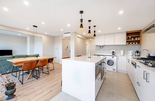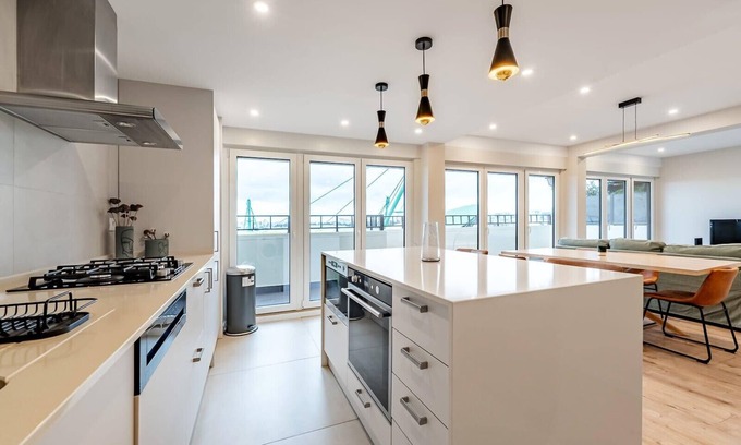NEW. Modern apartment with a view of Alvalade Stadium, 3 bedrooms (including a suite), a spacious balcony, and an open-plan kitchen with island. Two bathrooms — one with a shower, the other with a bathtub. Ideal for families, groups, or remote work.