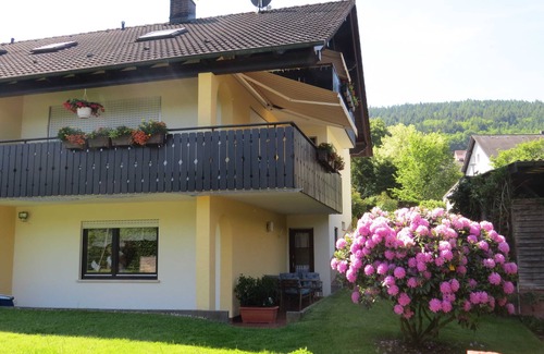 This newly renovated, modern and comfortable apartment is located in a well-maintained residential area. On 75 sqm you will find two bedrooms, a large bathroom, living room with dining area and a fully equipped kitchen, from which you reach the large terrace. The center of the Baroque city Amorbach can be reached in about 15 minutes. Footpath, the bicycle into the valley and trails can be found nearby. Children are happy to welcome guests, by request is a cot and a high chair for you. A children's playground is just a few meters away and free parking is available in front of the house.