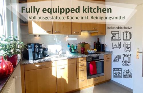 1.5 miles from Basel Zoological Garden in Basel, Amabello Apartment Colorful Art; 15-20 min von Basel, Bahnhof, Flughafen features accommodations with access to wellness packages and fitness room. This apartment offers free private parking, bicycle parking, and free Wifi. Outdoor seating is also available at the apartment. Offering a balcony and garden views, the spacious apartment includes 1 bedroom, a living room, flat-screen TV, an equipped kitchen, and 1 bathroom with a bath. Towels and bed linen are offered in the apartment. This apartment is non-smoking and soundproof. The breakfast offers continental, vegetarian options and fruit and juice are being served. If you like to discover the area, cycling, hiking and walking tours are possible in the surroundings and Amabello Apartment Colorful Art; 15-20 min von Basel, Bahnhof, Flughafen can arrange a bicycle rental service. Basel SBB is 1.8 miles from the accommodation, while Jewish Museum of Basel is 2.1 miles from the property.