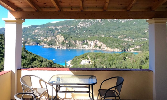 The house is located in Liapades village in North West Corfu, about 20km from Corfu town.It is 400m away from one of the most famous beaches of Corfu, Rovinia. About 100m from the main road and down the hill, it provides privacy in a beautiful, natural environment with stunning view while at the same time is about 500m away from the touristic area of Liapades village and 800m away from the centre of the village.