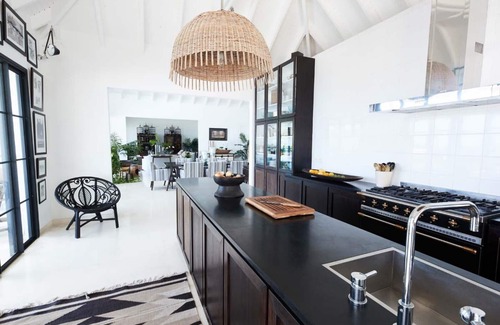 This luxury villa is the ideal home for two couples or can be rented as a one-bedroom villa also. Outside on the stunning terrace there is a solar heated pool and a heated Jacuzzi. This lovely villa has a charming character thanks to a chic and ethnic style mixed with Swedish design in strong black and white contrast.