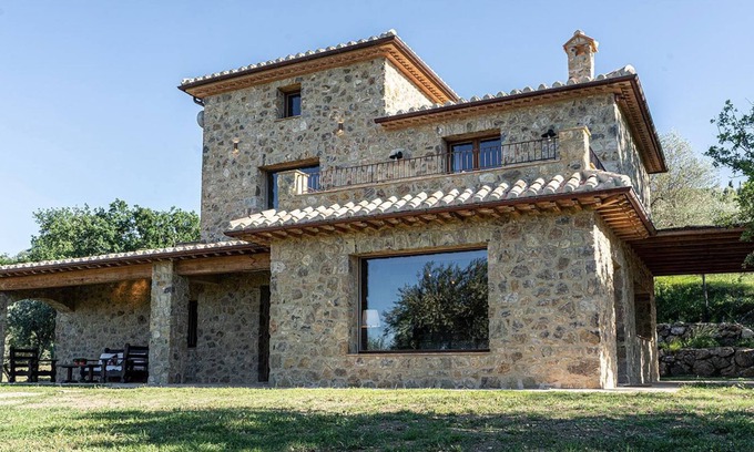 Amandula, from the ancient local jargon “màndula”, that is almond: the precious fundamental fruit in the ancient peasant diet whose tree dominated this area.It is the name of this villa built in 2019 with contemporary criteria of zero impact, enhancement of local materials and workers: handmade terracotta, chestnut beams, oak parquet;modern, linear, total white spaces.The light penetrates through the windows deliberately oversized to ensure that everything is animated and pervaded by natural light that becomes a piece of furniture.Amandula is perched on a hill 350 meters above sea level, overlooking a splendid rural landscape, dotted with expanses of olive trees, vines and thick woods bordered on the horizon by the lace of Monte Amiata,an ancient extinct volcano that stands out over the valleys between the provinces of Grosseto and Siena.It is located in a formidable territory where the slopes of the mountain meet and merge with the wild Maremma, which on one side slopes down towards the Tuscan coast and on the other overlaps with the undulating lands of the Val d'Orcia.The villa, thanks to its private position, within a farm where extra virgin olive oil is produced, is well suited to welcome those who want to get lost in a natural and relaxing dimension, where tranquility and large green spaces are protagonists.Moving easily from the property you can reach many destinations of interest that characterize the immediate surroundings, ranging from delightful medieval villages such as Abbadia San Salvatore, Arcidosso, Santa Fiora, Montalcino,