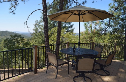 Beautiful, secluded, country home on 10 acres in Kelsey CA. Kelsey is 9 miles from Placerville and very near to Georgetown. Modern, open well-equipped kitchen and great room and 3 lovely bedrooms. Large sundeck with expansive views. Secluded for privacy, and yet close to fine wineries and white water rafting.