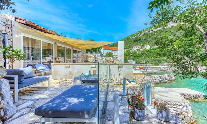 One of a kind charming property located right on the water in a secluded, quiet and tranquilbay.Amara cottage provides comfort, relaxation, privacy and views of the gorgeous landscape in every direction. Without many neighbors around you are sure to have thebeautiful blueAdriatic to yourself.At your disposal are two charming double bedrooms and 2 bathrooms, fully equipped kitchen and a small sofa lounge. Facing the sea priceless views can be enjoyed from all the rooms and make waking up here a truly wonderful start to a day. Outdoor stone deck leads to a pool, and is equipped with an alfresco dining area with BBQ facilities, as well as a direct access to the sea. Welcome to the Adriatic.
