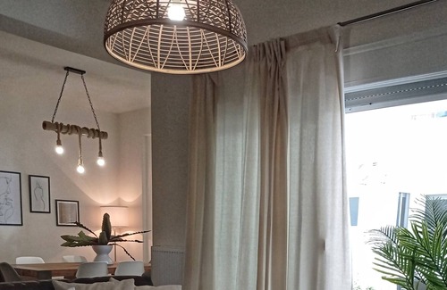 Fusing an element of tradition with sophisticated, contemporary chic; with spectacular sea and mountain views. Complete with all home comforts, designer furniture, a modern fireplace and state of the art kitchen appliances, this luxurious villa in Volos Alykes area unfolds into two levels with its own separate entrance. Sleeping arrangements include 3 bedrooms, one with 2 sigle beds and two with king size beds. Master family bathroom on the first floorand Wc on the ground floor.A beautifully appointed open-plan living room adjoining the well-equipped kitchen and dining area.