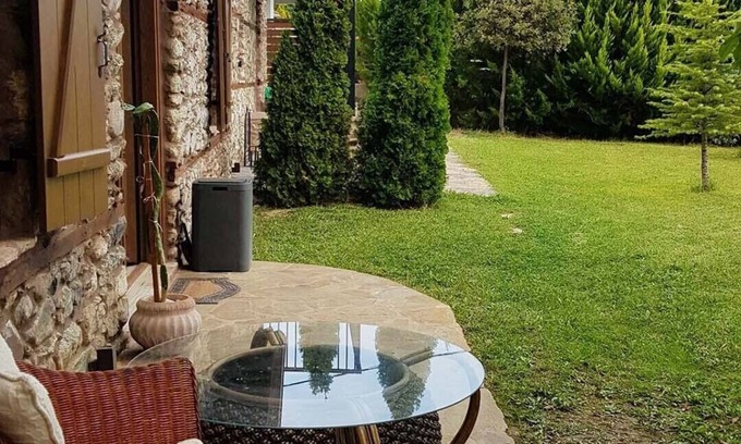Inside the village there are 3 traditional stone-built villas in the same courtyard, with amazing views of the sea and Mount Olympus. Quiet and relaxing, just 3 minutes away from the beach.