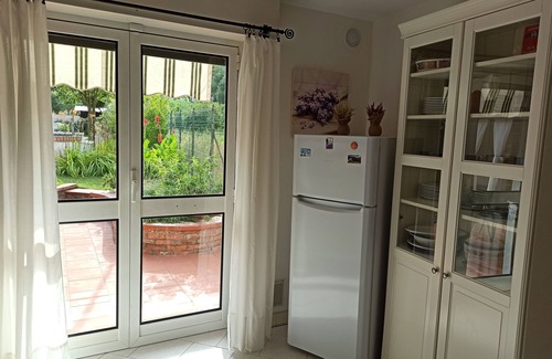 on the ground floor entrance into the living room with kitchenette, area with sofa bed for two people almost completely separated by a double curtain, anteroom and bathroom with shower and washing machine. Upstairs are two double bedrooms and a bathroom with 1/2 bath. Outside, another cooking area for cooking and dining under the stars. You will have: a synthetic rattan lounge, 2 sun loungers, 1 swing and 1 hammock. Upon returning home in the evening, you can take a shower with hot water even outside. If you are a smoker or a smoker, we kindly ask you to do it outdoors, thank you! We have recently equipped our house with an alarm system, we will also show you photos of the renovated garden as soon as possible