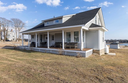 This beautiful compound is located on Wequetequock Cove in Stonington, CT. The 6- bedroom main home is newly renovated featuring 6 new King Beds. There are also 4 additional Studio Cottages each one very unique. They are all located steps away from the Main house. One Cottage has a single king bed, a twin bed, kitchenette, and a private bath. The other has 2 queen beds and a private bathroom. There are 2 more guest cottages that each have a private bath and a king bed. We can provide a small Boston Whaler type boat to take you to the beach. That is correct. The absolute nicest beach in all of New England is located 6 minutes from the house. It is called "Sandy Point Beach" It is only accessible by water. You don't have to go in the open ocean to get there. It is safely approachable by a small boat, kayak, or SUP. From your deck you can see the train bridge that you must go under, once on the other side you will see Sandy Point 1/4 mile in front of you. This beach is pristine. The water gradually goes out making for the perfect setting. Look up their Facebook Page or Google it. The beach is all perfectly white sand under your toes without a crab, rock, oyster, or anything else below you. Please click on this link and learn all about this amazing beach. https://newenglandboating.com/daytrip-destination-sandy-point-ct/. We also offer a custom pontoon boat that has been fitted to seat 24 people comfortably and can fit under the bridge. It is the perfect transport to and from the beach. We have a captain that will bring you each day for drop off and then pick up.