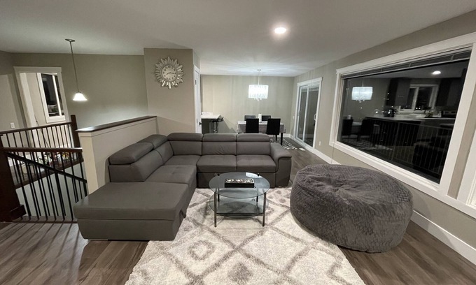Relax with your whole family at this peaceful place to stay. Gaze out at the relaxing city views . Two level guest suite with 3 bedrooms and beautiful panoramic, unobstructed views of the mountains and city. This newly renovated and newly furnished bright suite is only 10 mins to downtown & is in a friendly neighborhood. Quick drive to the airport, McArthur Isld, close to highway heading to Sun peaks and Jasper.