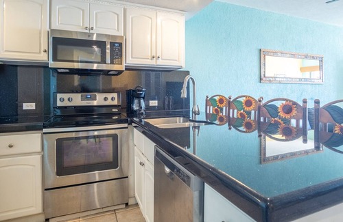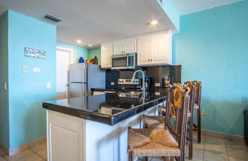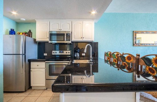 - Fully Equipped Kitchen: The modern kitchen features rich black granite countertops, allowing you to prepare meals or host intimate gatherings without leaving the comfort of your condo.