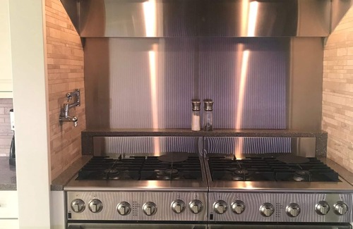 Gourmet Kitchen with Quartz counter tops, 60” range w/dual convection ovens, Commercial Hood, Huge Side by side fridge/freezer, dual whisper quiet dishwashers and triple sink w/garburator in island. Built in convection microwave, 47”TV built into Wall, Island seats 5.