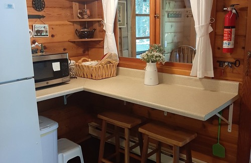 Enjoy the indoor propane log fireplace. Adventure out in the canoe, kayaks or pedal boat. Make S'mores by the fire pit near the beach. Firewood is provided. Walk or bike ride on the road that follows the beautiful shoreline. The sandy beach has easy walk in access for all of the boats mentioned. Life jackets are supplied. The beach and fire pit can be seen from inside the cabin along with the beautiful sunsets.