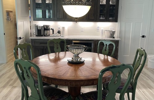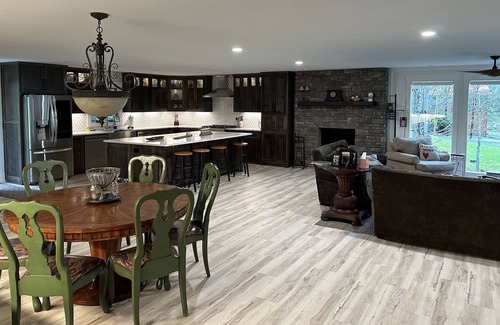 So much space for cooking, entertaining, games, Fall football watching, and reading. A new tv has been added for viewing football on the porch as well as the river at the same time. Want to play some Classic 80's music, we have an 80's Pioneer receiver step up with Apple Wifi to push with your phone’s music list and listen to some good old tunes that we played on turntables in last century! Please keep your noise to a minimum between 10:00 p.m. and 8:00 a.m. both inside and outside the cabin. This includes hot tubs, fire pits, and porches. Sound travels easily in the mountains and river which can disturb unseen neighbors.
