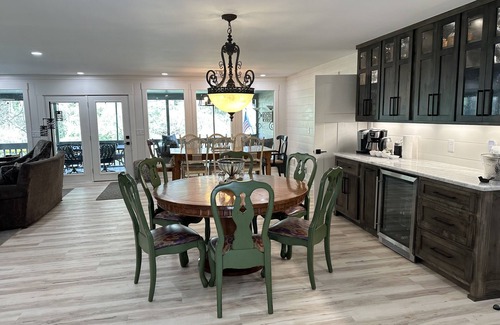 If you are a "Master Chef", "Sous Chef" or "Personal Family Chef," you will be extremely pleased with this very well stocked, well planned and extra large kitchen and bar with dining seating for 14+ guests and open entertainment area with up close views of the river.